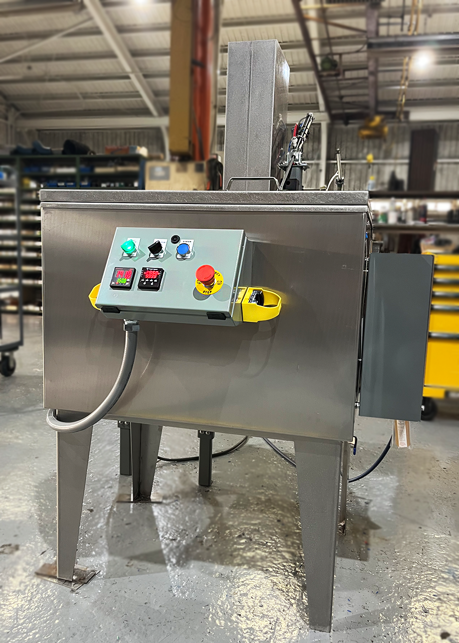 As industry-specific needs continued to develop, the MLSR has been custom engineered to meet those needs head on. When a company in New Jersey required an addition to their medical equipment cleaning process, Magnus Engineered Equipment designed a solution that would remove any excess penetrant from products that have undergone Fluorescent Penetrant Inspection. Equipped with fiber-optic sensors used to initiate a timed wash cycle and operate the tank lid, the custom MLSR fit seamlessly into their production line.