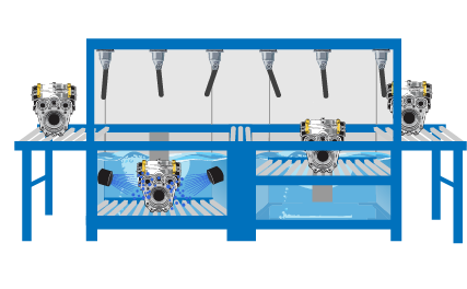 The ultimate cleaning system: multi-stage immersion lines are built to send parts through different stages of the process with minimal operator interaction. Soak, wash, dwell rinse, and heated drying can all be completed with the press of one button.