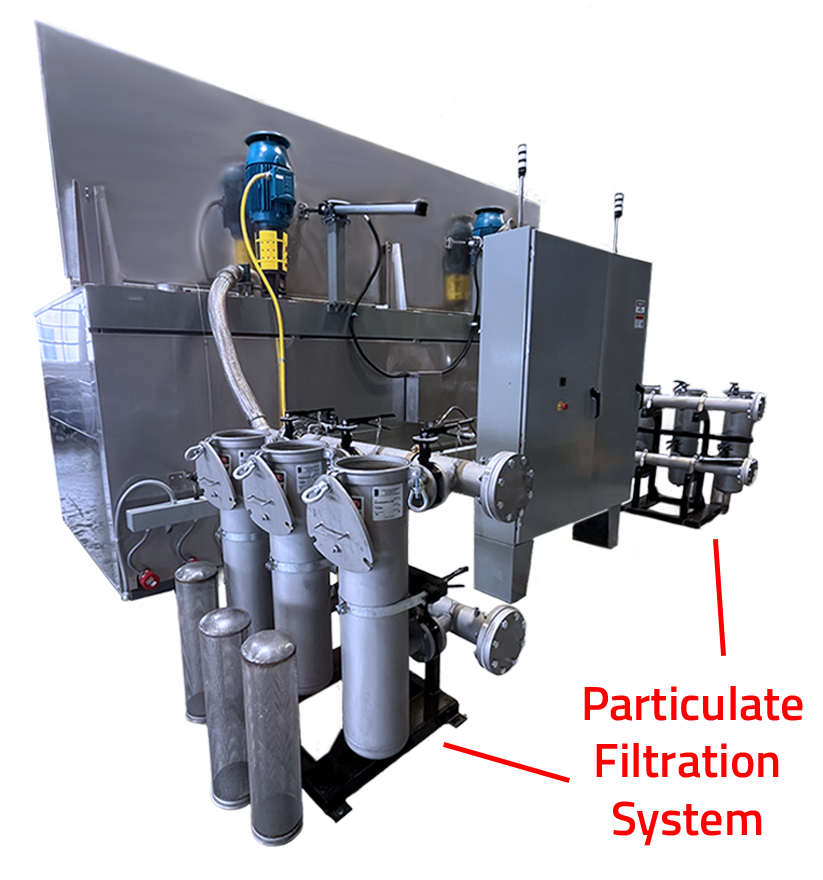 Stand-alone or tank-mounted filtration systems work with the immersion tank to take the cleaning process to the next level of efficiency. They draw water or chemical solution from the tank, pump it through a filtration system to remove particulates, and pump the filtered water or solution back in. This extends the life of the bath, resulting in a more consistent cleaning operation.